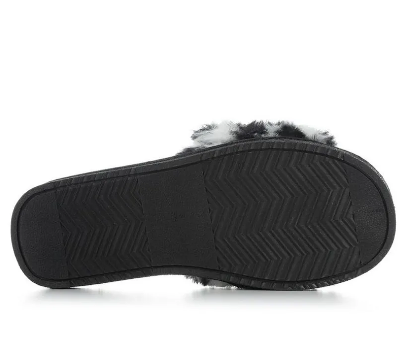 The Women’s Juicy Couture Hiero Slippers deliver cozy comfort with bold, luxe style. Designed with a plush faux-fur upper in a playful black-and-white check pattern, they bring warmth and softness to your lounging look. Finished with the Juicy logo across the strap and a cushioned sole, these slide slippers combine fashion and relaxation perfectly.