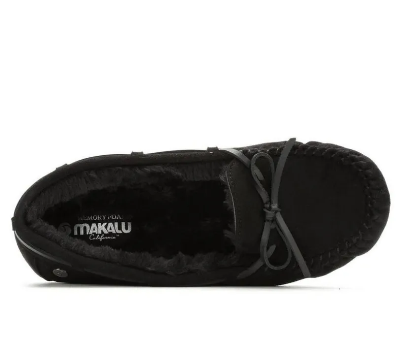 Women’s Makalu Casual Slip-On Moccasins. Keep your feet warm and cozy while looking stylish in the Makalu Mock Out! These slipper-like moccasins feature plush lining, memory foam cushioning, and boat shoe lacing accents. So comfy and cute, you will want to wear these fuzzy mocs both in the house and out and about!