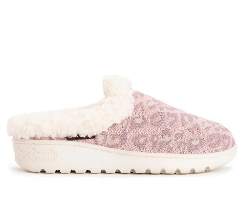 MUK LUKS Nony Flyknit Slip On is lined in faux shearling warmth and designed in fun leopard-print patterns. The permanent, built-in, contoured support along with the non-slip tread bottom make this an easy-to-wear slipper throughout your day.