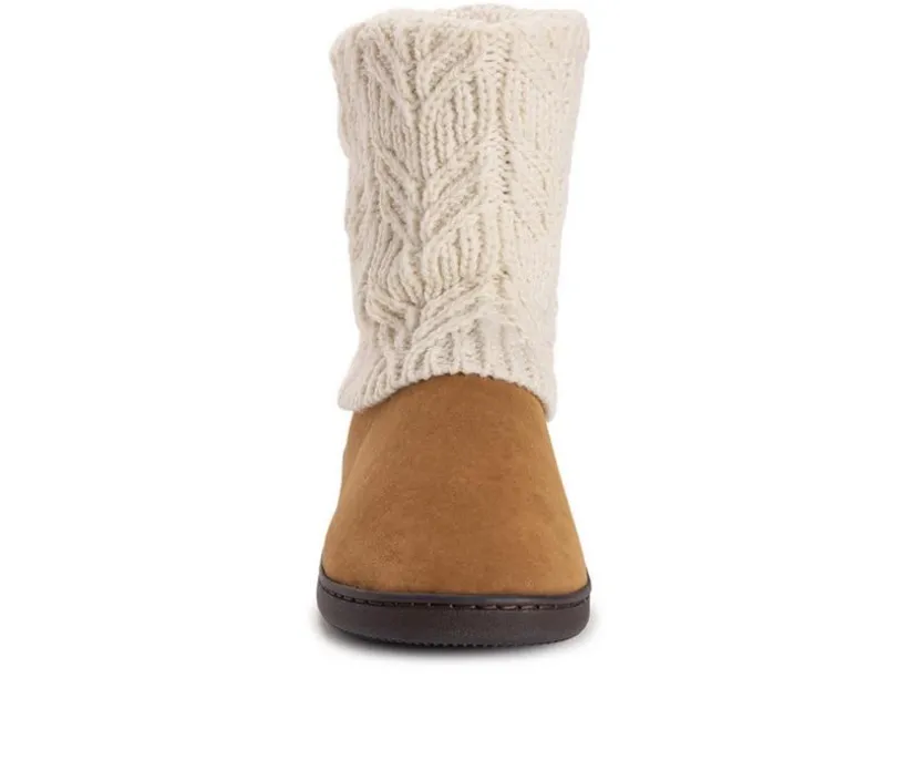 Slip into these cozy knit MUK LUKS® Raquel Slippers when temps start to drop. These mid-height slipper booties will warm your legs and treat your feet with comfortable foam insoles and durable indoor/outdoor sole. Wipe with damp cloth, do not bleach, lay flat to dry. Imported. Indoor/Outdoor TPR Solen-100% Polyester Insole. 100% Acrylic Upper. 100% Polyester Faux Fur Lining. Foam Insole. Multiple Color Options. US Women’s whole sizes S (5-6), M (7-8), L (9-10), XL (11-12).