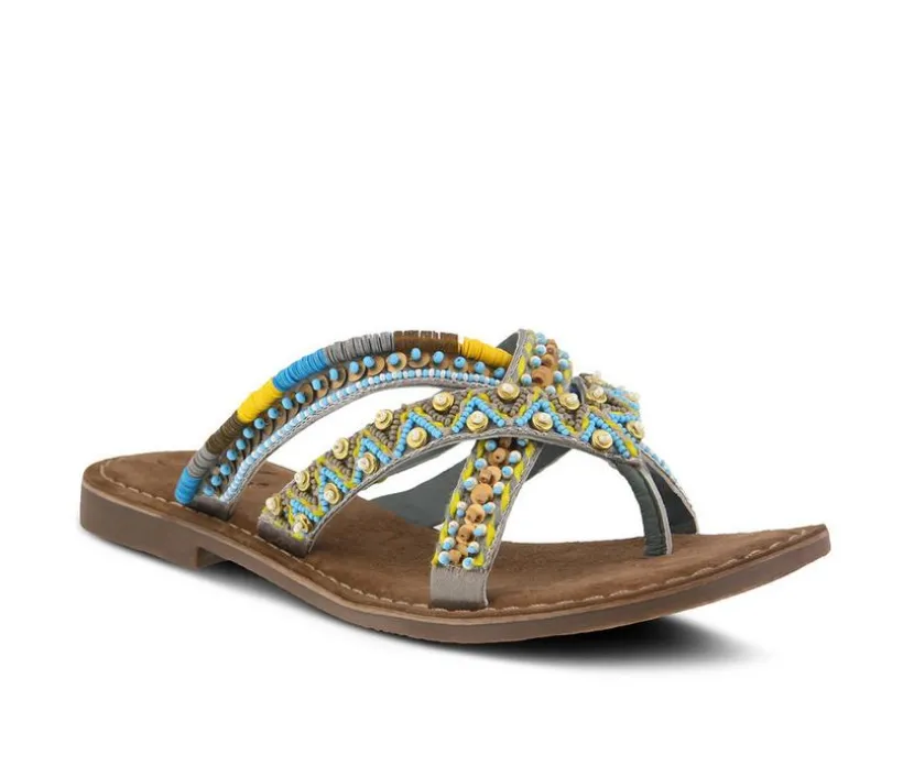 A plethora of fabulous beaded straps with multiple colors and geometric designs on the ultimate summer thong. You’ll love the subtle details of pearls, beads discs and wood that come together to what will surely be your favorite go-to sandal of the season. Padded sueded insoles for all day comfort.