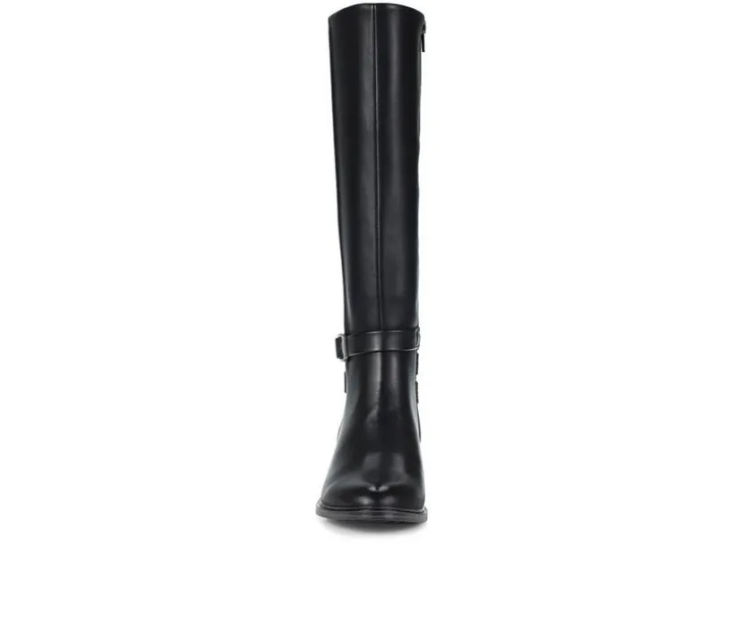 Bring fashion and function together with this versatile tall boot that’s perfect for everything from cool-weather commutes to casual weekends. Crafted with a smooth synthetic upper and subtle stitching details, it delivers a polished look with everyday comfort. A decorative side buckle adds a hint of rugged flair, while the inside zipper allows for quick on-and-off. Finished with a low block heel and textured outsole, this boot offers both support and style for all-day wear.