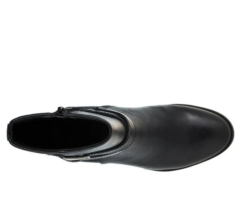 Strike the perfect balance of elegance and everyday ease with this sleek midi boot. Featuring a smooth synthetic upper and wraparound buckle strap detail, it delivers a refined look with a modern edge. The block heel offers added height with confident stability, while the inside zipper allows for quick changes on the go. Designed with a cushioned insole and softly rounded toe, this boot keeps you looking and feeling great wherever your day takes you.