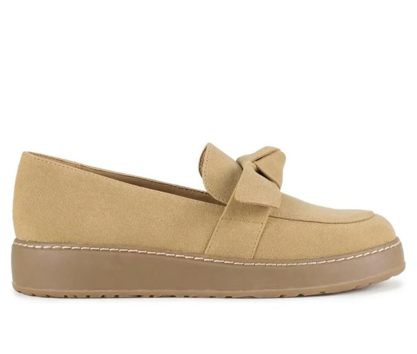 Sleek, simple, and effortlessly stylish, this casual moc-toe slip on is the ideal go-to for polished comfort. Featuring a soft synthetic upper with a charming knotted strap detail, it delivers just the right mix of ease and elegance. The cushioned insole provides reliable support, while the lightweight platform sole offers a subtle lift for everyday wear. Designed for versatile styling, this shoe transitions seamlessly from weekday errands to weekend lounging.
