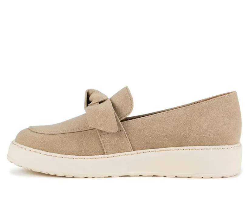 Sleek, simple, and effortlessly stylish, this casual moc-toe slip on is the ideal go-to for polished comfort. Featuring a soft synthetic upper with a charming knotted strap detail, it delivers just the right mix of ease and elegance. The cushioned insole provides reliable support, while the lightweight platform sole offers a subtle lift for everyday wear. Designed for versatile styling, this shoe transitions seamlessly from weekday errands to weekend lounging.