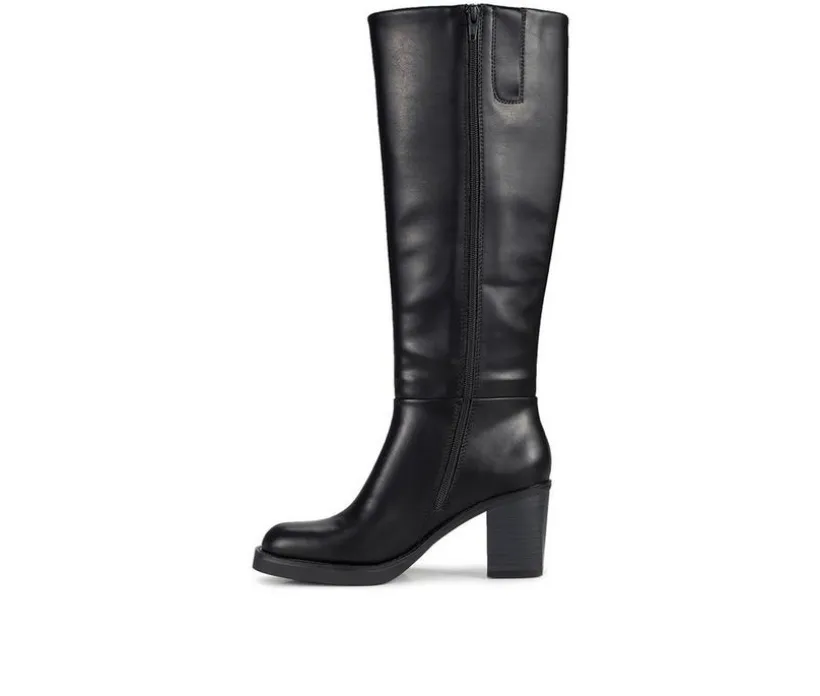 Sleek sophistication meets all-day comfort in these tall wide-calf boots. Crafted with a soft synthetic upper and a classic round toe, they feature a full side zipper for easy wear and a supportive block heel for a flattering lift. The cushioned insole provides underfoot comfort, while the durable outsole offers steady traction. A perfect pick for elevating your cold-weather wardrobe with timeless style.