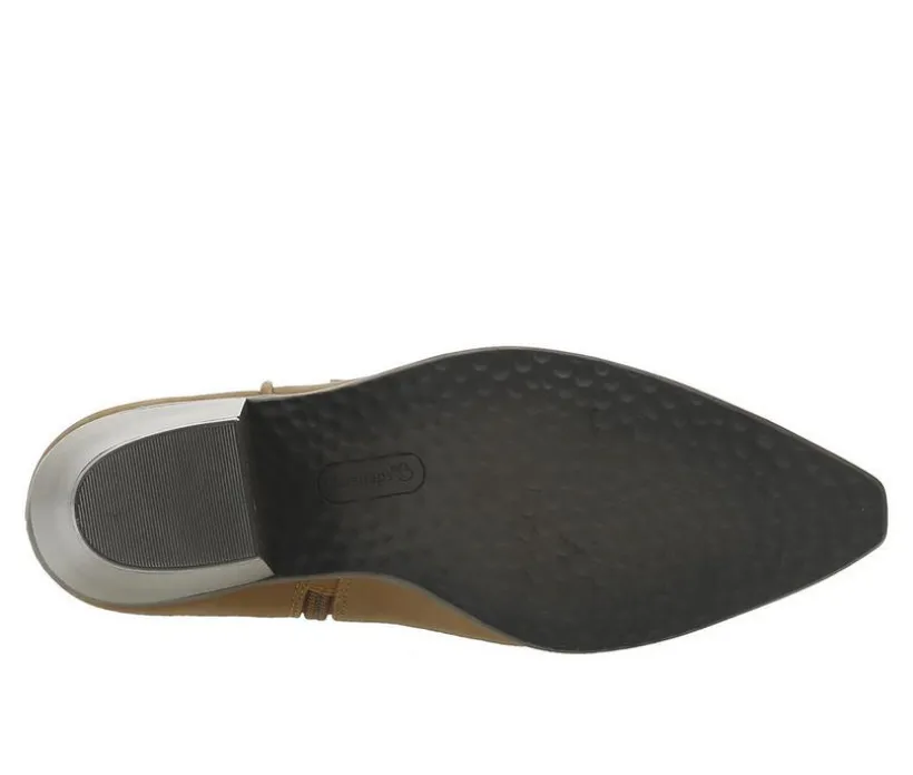 Uncover the rugged elegance of Baretraps Yenni Western Boots. Crafted with a sleek synthetic upper, these boots seamlessly blend modern style and timeless appeal. The inside zipper closure ensures easy on and off, while the cushioned comfort insole and lightweight, flexible outsole provide all-day wearability. The microfiber footbed adds a plush, supportive foundation, keeping your feet comfortable through every stride. With an ankle-high silhouette, patterned upper and a classic pointed toe, the Yenni boots exude a refined Western aesthetic that effortlessly transitions from the ranch to the city. Finished with a sturdy block heel, these versatile boots will elevate your look and keep you confidently on the move. Experience the perfect balance of fashion and function with Baretraps Yenni Western Boots – a must-have addition to your wardrobe.
