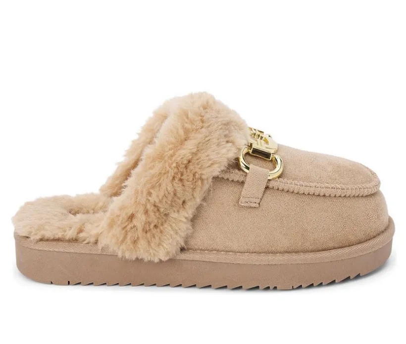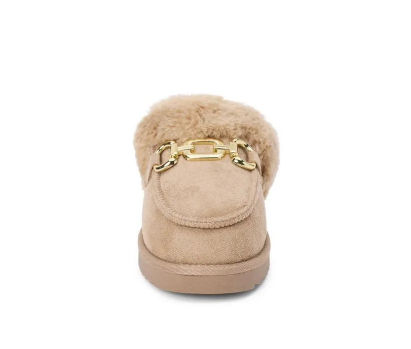 Stay cozy and chic with these lounge-ready vegan mules. Designed with a faux-fur lining for softness and warmth, they’re accented by a decorative ornament detail for added style. The slip-on construction makes them easy to wear indoors or out, keeping your look casual yet polished.