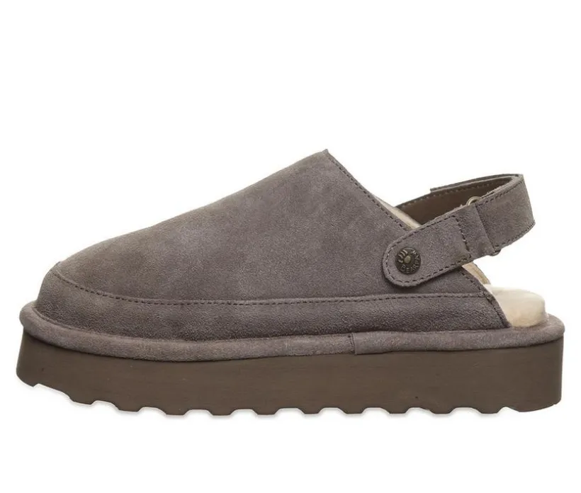 The Brooke clog delivers cozy versatility with a stylish twist. Featuring a suede upper and an adjustable multi-directional strap, it can be worn as a slip-on mule or secured with a heel strap for added hold. A faux fur and wool-blend lining keeps feet warm, while BearCoat® Rain & Stain Repellent adds durability. With a 1.25″ heel, these clogs blend comfort, function, and style in one easy-to-wear package.