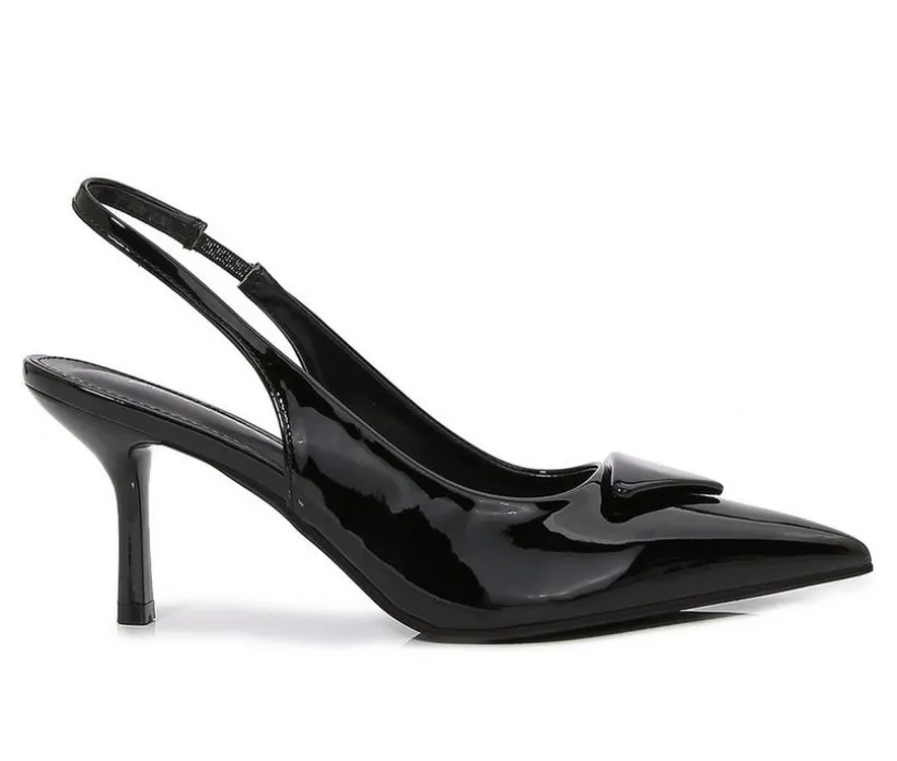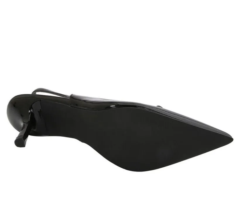 Refine your evening or office ensemble with these pointed-toe slingback heels, designed with sleek lines and timeless sophistication. A sculpted kitten heel adds just the right amount of lift, while the open back and tapered silhouette create an elegant, flattering profile. Whether styled with tailored looks or occasion wear, they deliver poised polish in every step.