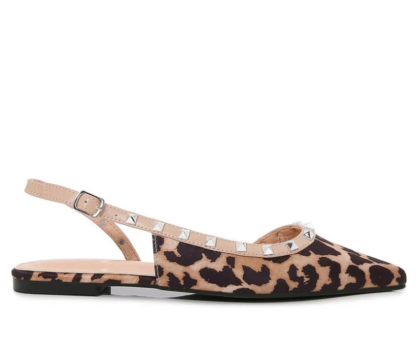 Sleek and striking, this pointed-toe flat adds edge to everyday wear with its polished shape and studded trim. The sharp silhouette is softened by the delicate slingback strap, while gleaming metal accents outline the topline for a bold touch. Perfect for when you want a flat that doesn’t fall flat on style.