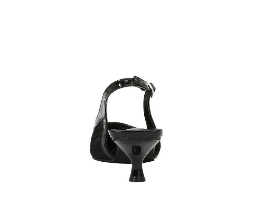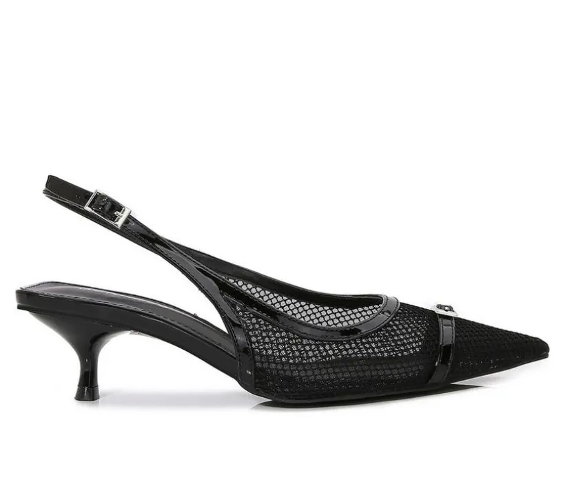A good mix of elegance and modern texture, this pointed-toe slingback is made with a translucent mesh upper that adds dimension and airiness. Has a low kitten hel for a subtle fit.