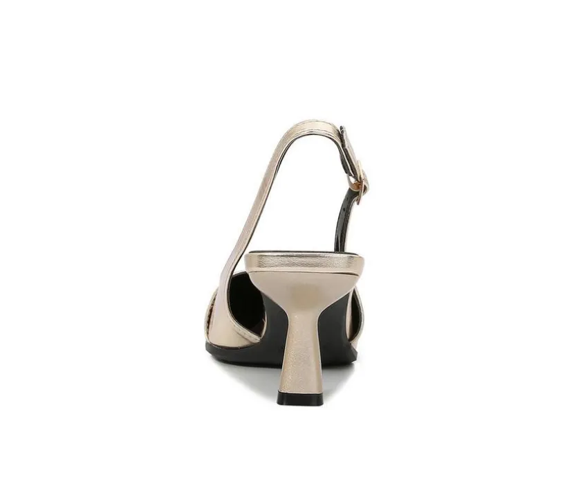 Make an entrance with these pointed-toe slingback pumps, accented by a bold statement buckle for added flair. The sleek upper and sculpted kitten heel provide a balance of polish and personality, while the open slingback keeps the silhouette light and modern. Perfect for formal events, evening outings, or dressing up your day-to-night wardrobe.
