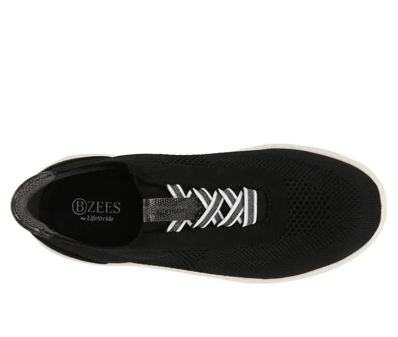 The slip on sneaker with so much game. Elevate everything in these lightweight, machine-washable sneakers with faux laces. Stretch engineered knit upper with a round toe. Slip-ins for easy on/off. BLOOM™ materials: Eco-conscious algae-infused foam layer under the insole. BZEES Air Step Technology: Designed so you’ll feel weightless, energized and free. Ultra Lightweight: Step lightly with a nearly weightless feel. Dynamic Stretch Fabrics: Move freely in shoes with built-in stretch. FreeFoam™ Comfort: Low pressure insoles with maximum foot contact and cushy arch support. ComfortBlast Foam: Our most premium foam with unbelievable rebound, luxe cushioning, and comfort that never quits. SoCush arch support. Anti-Microbial and Odor Control technology. 1 3/8 inch platform, 1 5/8 inch heel. Get Width It: Countless pairs of Bzees come in wide width shoes for women. Machine Washable: Wash on cold and air dry.