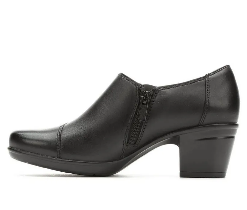 Get the style and comfort you want with the Clarks Emslie Warren! These durable heeled shoes have an easy zip-up closure, super cushioned insole, lightweight midsole, and a textured rubber outsole. The side button detail and low profile heel give you just the right amount of lift and style to wear with casual and slightly more formal looks.