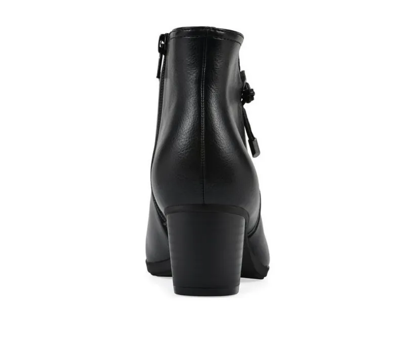 Step up your everyday style with the Women’s Cliffs by White Mountain Angelo Booties. Designed with a sleek suede-like finish, this ankle boot features a clean profile accented by a side zipper with metallic pull for easy wear. The mid-height block heel offers a flattering lift while keeping comfort in check, making them perfect for both work and weekends. Versatile and polished, these booties pair effortlessly with everything from denim to dresses.