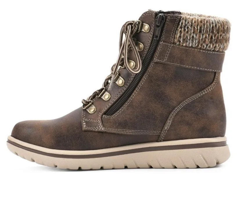 A comfortable, lightweight sole sets the stage for the Hearty lace-up boot from Cliffs by White Mountain Shoes. The city hiker gets an upgrade with decorative zipper and buckle accents. A knit collar adds a snuggly style to this cold weather staple.