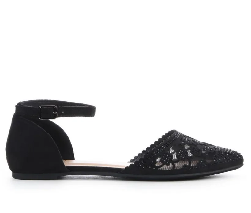 The Women’s Daisy Fuentes Lavish Flats bring refined elegance to your wardrobe with delicate mesh floral cutouts and sparkling embellishments. Designed with a pointed toe and adjustable ankle strap, this dress flat blends graceful lines and secure comfort. Whether you’re heading to a special event or dressing up a casual look, it delivers chic styling with every step.