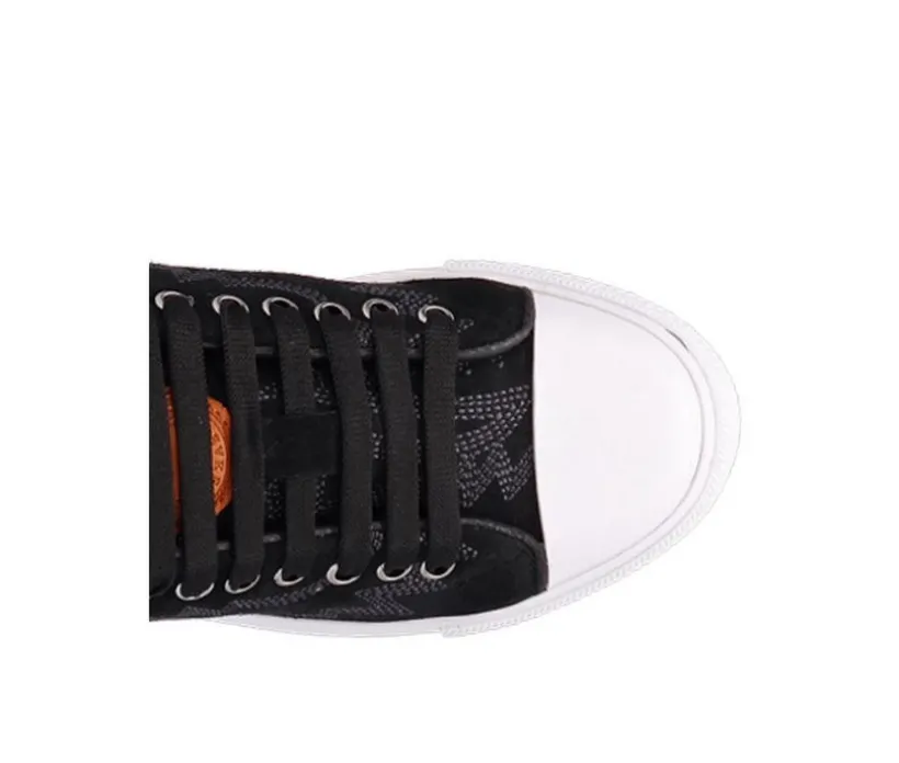 Bring edgy style to your everyday look with these low-top sneakers that blend bold texture with classic construction. Featuring a rugged canvas-like upper with zigzag embroidery and dual metal eyelets for breathability, these sneakers offer the perfect mix of street-smart detail and functional comfort. The lace-up front provides a secure fit, while the cushioned interior and vulcanized rubber sole ensure reliable comfort and traction throughout your day. Finished with a clean, timeless silhouette that works with everything from jeans to joggers.