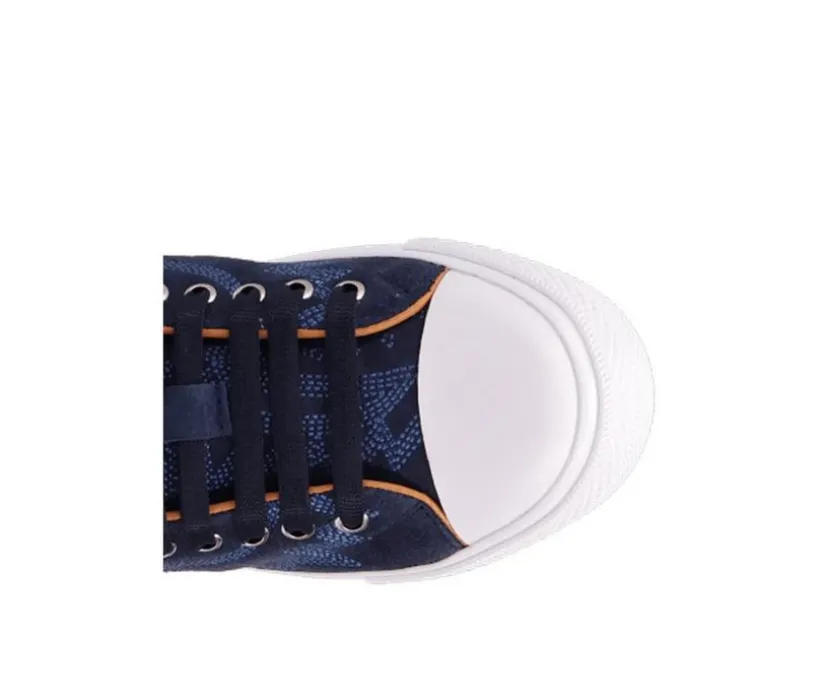 Bring edgy style to your everyday look with these low-top sneakers that blend bold texture with classic construction. Featuring a rugged canvas-like upper with zigzag embroidery and dual metal eyelets for breathability, these sneakers offer the perfect mix of street-smart detail and functional comfort. The lace-up front provides a secure fit, while the cushioned interior and vulcanized rubber sole ensure reliable comfort and traction throughout your day. Finished with a clean, timeless silhouette that works with everything from jeans to joggers.