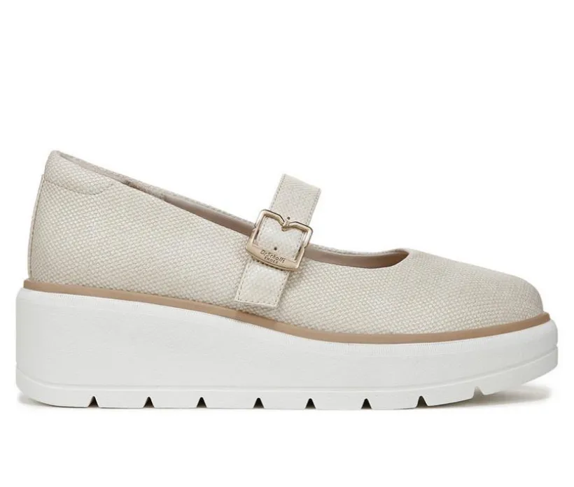 Platform wedge Mary Janes for women built with our innovative sport technology. SUSTAINABLY CRAFTED: Fabric linings and topcloth partially made from recycled plastic bottles; partially recycled toe box and heel counter. MATERIALS: Low-chemical faux leather upper. FIT: Adjustable buckle closure for secure fit. SUSTAINABLE COMFORT: Anti-microbial, anti-odor Insole Technology with cushioning, comfort, & arch support that uses 15% cushy plant-based BLOOM® foam insole. MOVEMENT: Lightweight, flexible construction moves with you. FEEL GOOD FLEX: Soft, lightweight outsole with built in flex grooves. STYLE: Womens Mary Jane loafers with iconic buckle detail, 1 3/4 inch wedge heel and 1 1/4 platform lug outsole. CONSCIOUSLY PACKAGED: This style is shipped in an environmentally preferred 1-piece box made with primarily recycled materials that can be recycled & soy-based inks. Enjoy maximum comfort in these chic Mary Janes with edgy style and on-trend design.
