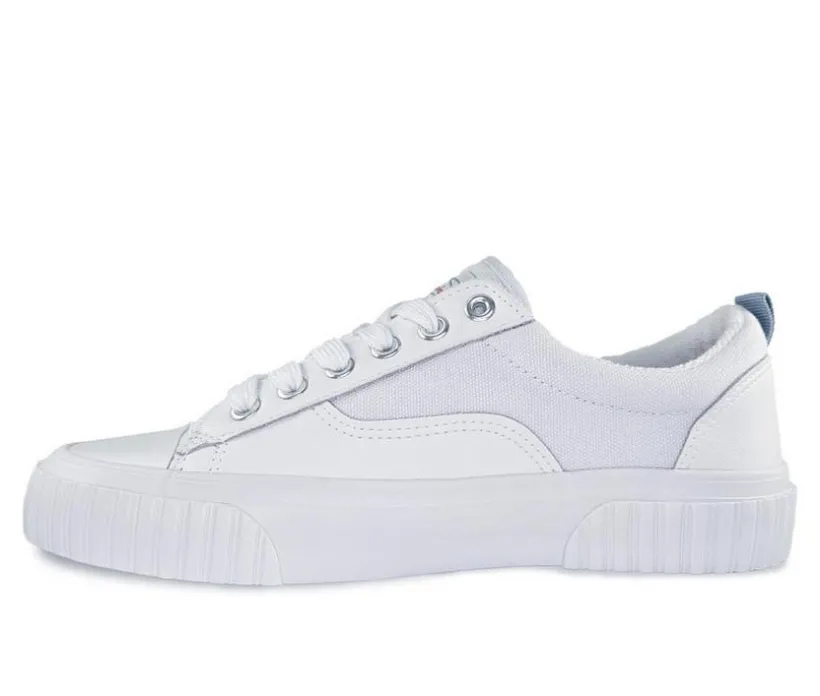 The Women’s Drive-In Originals Showtime Sneakers features a genuine leather upper with hints of canvas. This versatile shoe has a durable yet flexible rubber outsole great for any activity. The padded collar and comfort foam insoles are an added touch to reduce fatigue from long use and assure maximum comfort.
