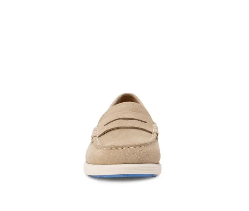 The Baldwin penny loafer is sleek and contemporary, providing endless comfort all day long. Leather or suede upper with a micro-suede fabric lining for barefoot comfort. Fully lined, cushioned insole for all-day long-lasting comfort. A light and flexible rubber outsole for great comfort, slip resistance and durability. Heel Height: 1″.