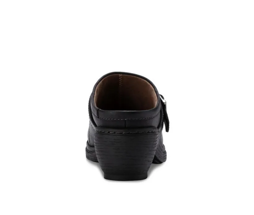 The Cameron buckle clog complete with hand stitched details for any outfit. Fabric-lined synthetic upper. Fabric-lined synthetic upper. TPR outsole for great flexibility, slip resistance, light weight and durability. Heel Height: 2 1/4″.