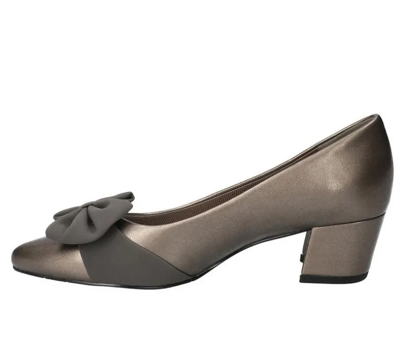A feminine dress pump with a chic bow accent and clean, tapered lines. The sleek upper and pointed profile sharpen any outfit, while soft cushioning supports extended wear. A graceful mid heel delivers height with a stable, confident feel.