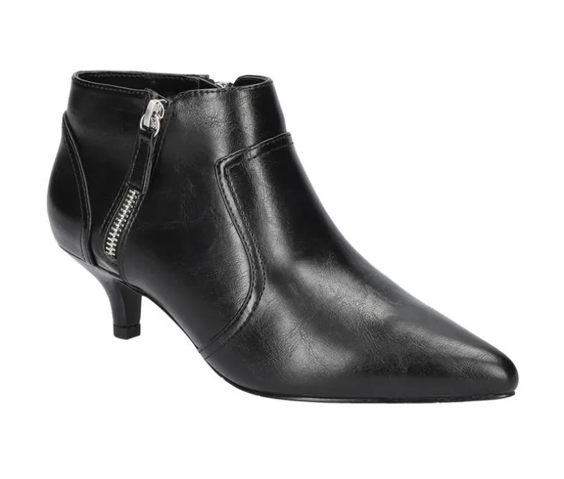 Enhance your wardrobe with the Annalee dress bootie by Easy Street. The pointed toe design offers ultimate sophistication. The feminine overlay is accentuated with an on-trend self-covered kitten heel. The double zipper gives a contemporary look to this timeless style. Padded heel-to-toe for all day comfort.