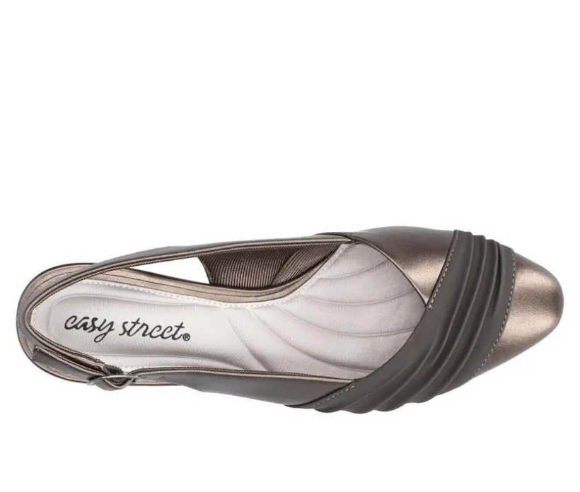 Keep it simple and classic with the Bates slingback pump from Easy Street. The rusched overlay helps add a sophistication to any outfit. A heel to toe padded comfort insole and adjusbtle slingback provides a customizable fit to take on the day.
