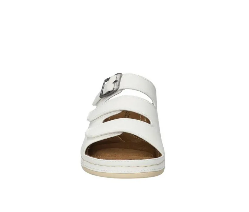 The Pinterry by Easy Street comfort slide sandal offers classic everyday styling with a buckle and multiple adjustability for a custom fit. The banded design is contemporary. Designed with comfort in mind with a heel-to-toe sock and flexible unit.