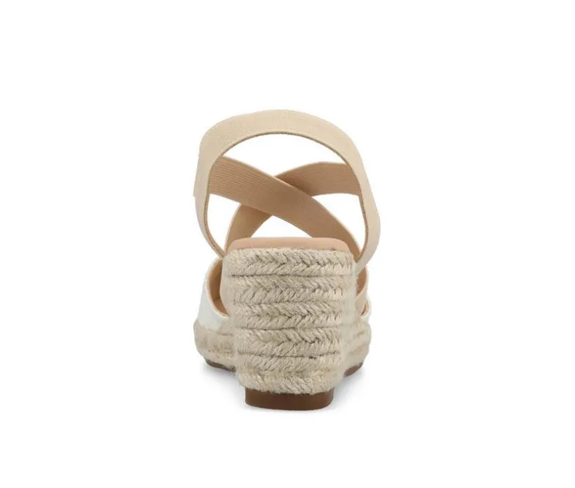 The Ashlee espadrille wedge sandal from Journee is the perfect summer footwear for everyday wear. It features a stylish pull-on design and a 2 3/4-inch heel that ensures easy slip-on convenience. Crafted from soft fabric, its multi-strap construction not only adds a touch of elegance but also provides a secure fit, while the round-toe shape enhances comfort for all-day wear. Additionally, the cushioned footbed offers exceptional support, making these sandals an ideal choice for those seeking both fashion and functionality during the warm months.