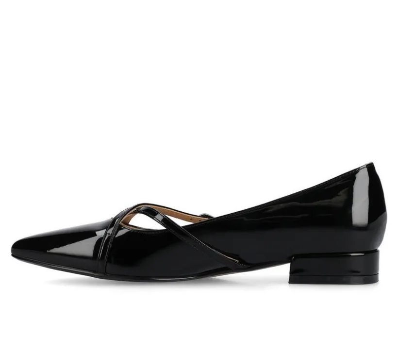 The Women’s Journee Collection Camby Shoes combine timeless sophistication with modern design elements. Crafted from luxe synthetic material, these slip-on shoes feature chic crisscross strap detailing for a touch of texture and allure.