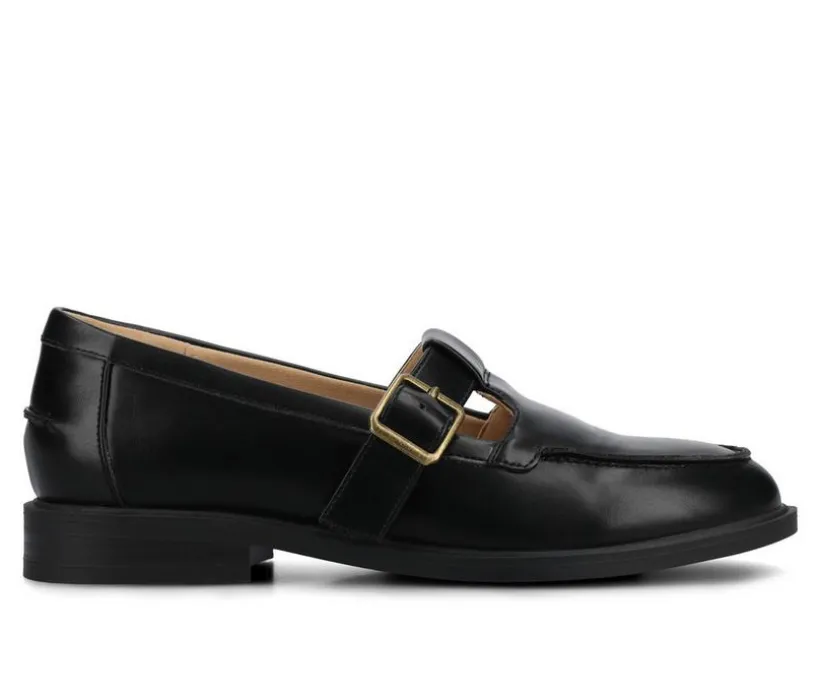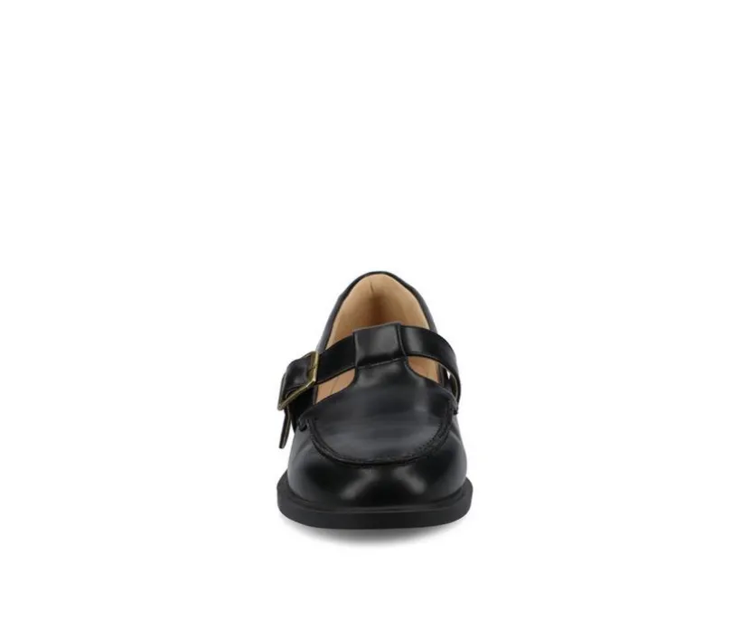 Blending loafer sophistication with Mary Jane charm, these shoes create a versatile silhouette. The smooth upper is paired with a strap and buckle closure for a secure fit, while a cushioned insole provides day-long support. A rounded toe enhances the timeless look, and the low heel adds subtle polish. Ideal for work or casual wear, they’re an easy go-to option.
