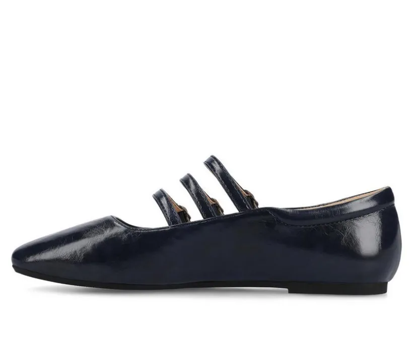 The Darlin Mary Jane flat from Journee Collection features a stylish and comfortable design with a flat sole, making it a versatile choice for everyday wear. The multi-strap detailing with a buckle closure adds a trendy touch, enhancing the square toe style and providing a secure fit. Crafted with faux leather for the upper material and man-made outer sole, and equipped with a 4 mm Tru Comfort Foam™ footbed, these flats prioritize both fashion and comfort for a chic and practical footwear option.