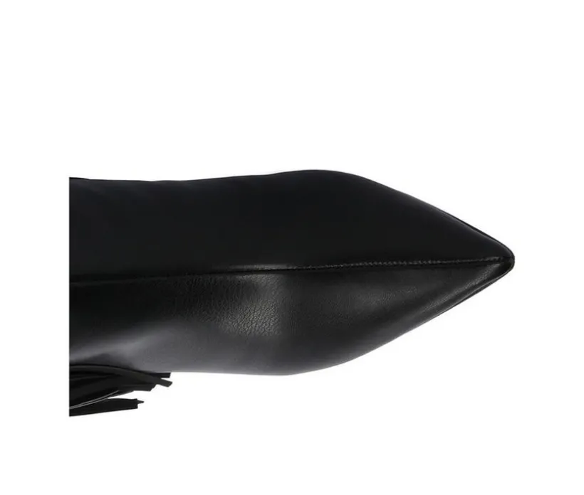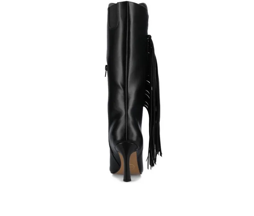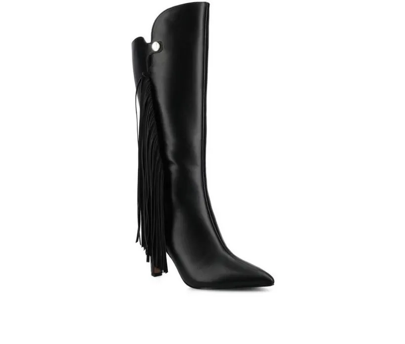 These tall boots bring sleek sophistication with a touch of charm. The smooth upper extends to the knee for a bold silhouette, while tassel accents add movement and style. A side zipper ensures easy on-and-off, and the cushioned insole delivers lasting comfort. Finished with a sturdy block heel, they’re the perfect blend of fashion and function for day or night.