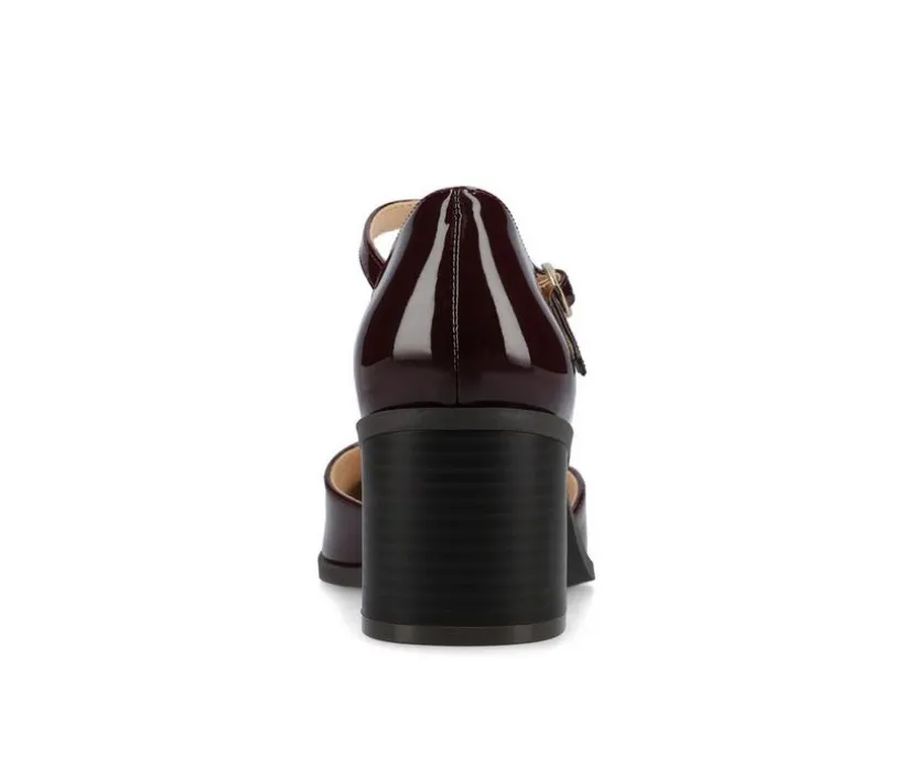 Step into chic sophistication with the Evangeline block heel from Journee Collection, featuring a stylish square toe and a trendy 2 1/2-inch stacked heel. Crafted from faux leather, these heels showcase an ankle strap with a buckle closure for both fashion and a secure fit. The 4 mm Tru Comfort Foam™ footbed, coupled with the man-made outer sole, ensures comfort and style, making the Evangeline block heel a versatile and fashionable choice for any occasion.