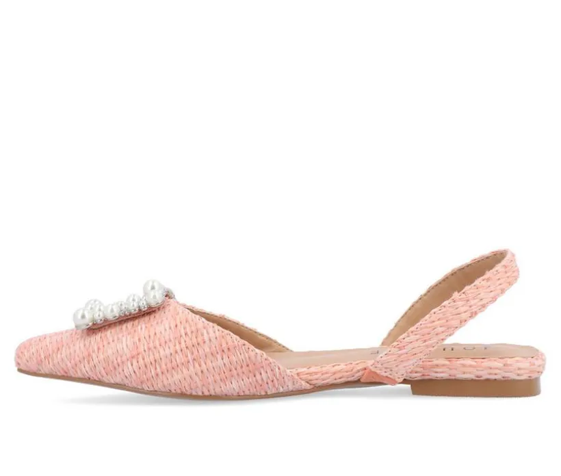 The Hannae flat from Journee Collection will take you from work to a nice dinner outing with ease. This glam flat can match just about everything thanks to the raffia-inspired material, sling-back strap, gem detail and pointed-toe. To add a little something extra, their padded footbed and pull-on closure will keep your feet comfortable with every step.