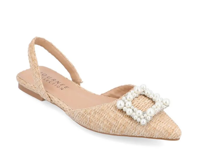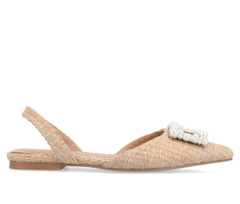 The Hannae flat from Journee Collection will take you from work to a nice dinner outing with ease. This glam flat can match just about everything thanks to the raffia-inspired material, sling-back strap, gem detail and pointed-toe. To add a little something extra, their padded footbed and pull-on closure will keep your feet comfortable with every step.