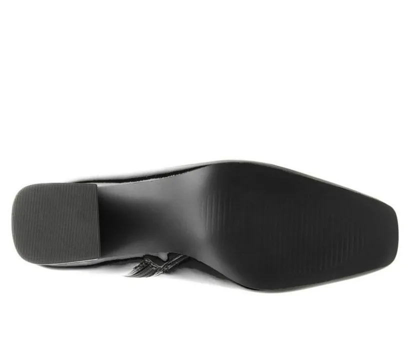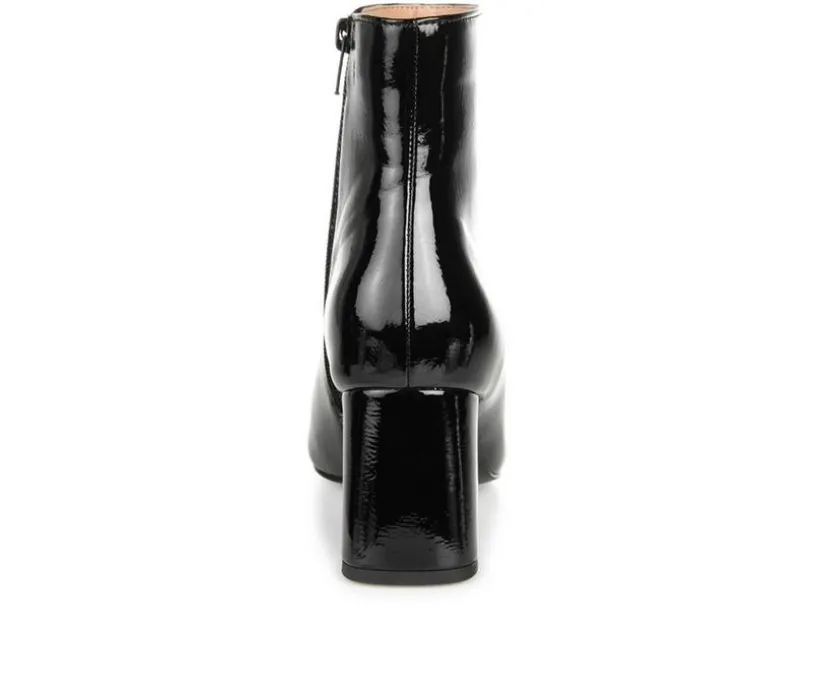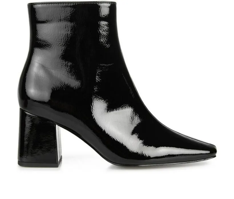 Instantly elevate any outfit with the Haylinn by Journee. This square-toe bootie keeps it effortlessly chic with patent vegan leather uppers. A zipper entry makes them easy to slip into, and a block heel paired with a 4 mm Tru Comfort Foam™ footbed makes them a breeze to walk in. At Journee, our booties will give you that comfortable yet stylish look, perfect for when you’re in the office all the way to a fun night out with the girls.