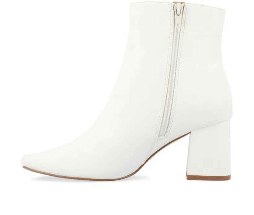 Instantly elevate any outfit with the Haylinn by Journee. This square-toe bootie keeps it effortlessly chic with patent vegan leather uppers. A zipper entry makes them easy to slip into, and a block heel paired with a 4 mm Tru Comfort Foam™ footbed makes them a breeze to walk in. At Journee, our booties will give you that comfortable yet stylish look, perfect for when you’re in the office all the way to a fun night out with the girls.