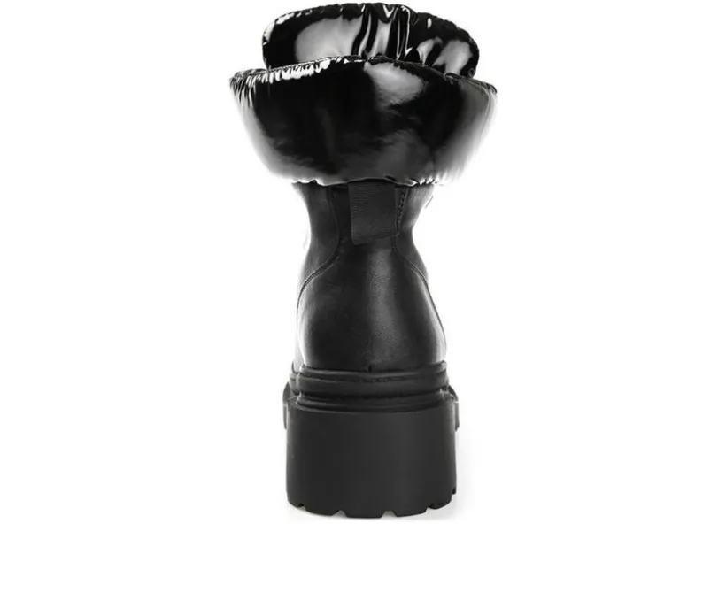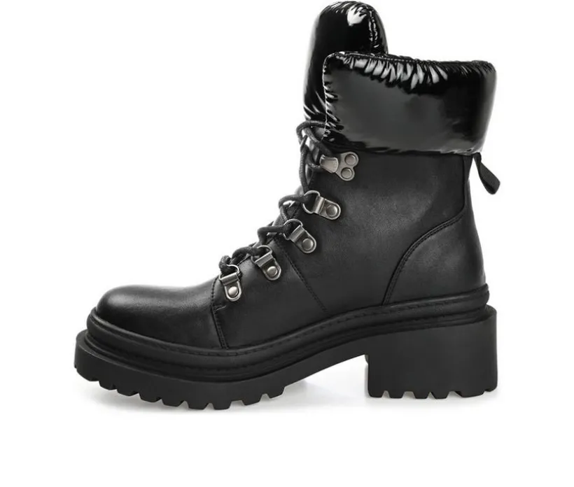 Cool and oh-so-comfy details define the Irrah booties by Journee Collection. This bold combat style features our signature 4 mm Tru Comfort Foam™ insole, soft vegan leather, and a puffed ankle for all-day comfort. A lace-up closure with hardware details and a chunky lug sole boldly complete the look.