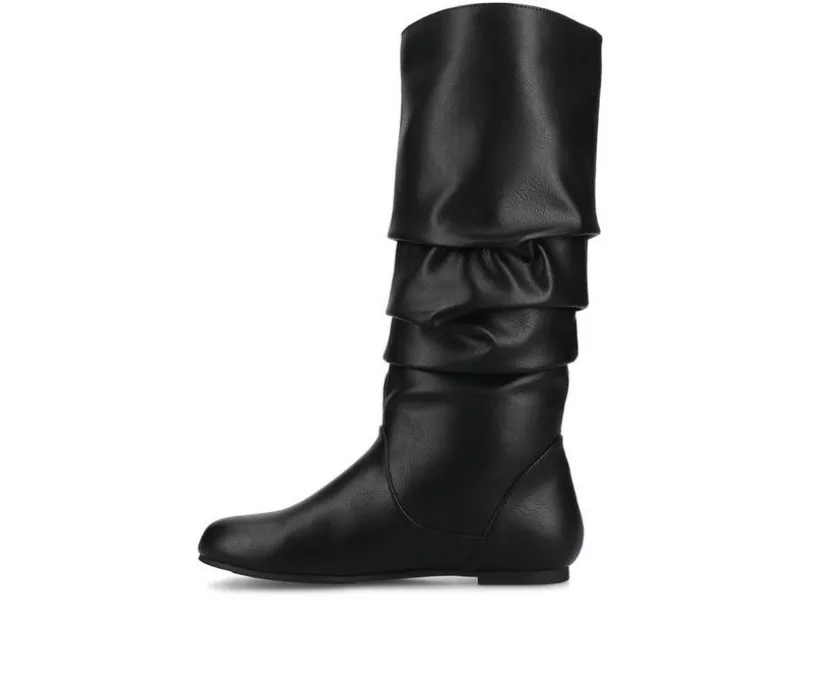 Show off classic style in women�s flat riding boots by Journee Collection. These autumn boots feature faux leather with a subtle slouchy design at the ankles.