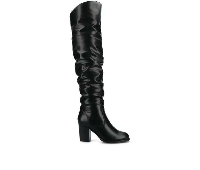 The Kaison is a ruched over-the-knee boots by Journee Collection is constructed with soft faux suede uppers that rise over the knees with raised vamps that create stylish detail. A rounded toe and stacked chunky high-heels finish the design to give you the perfect look for your day.