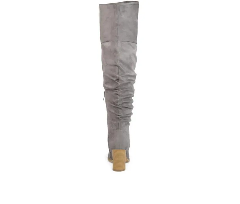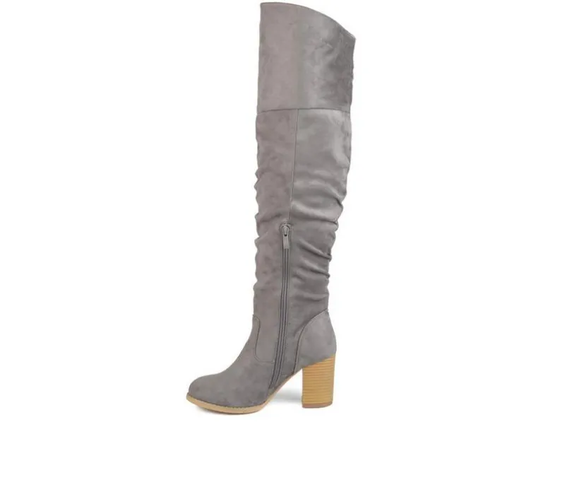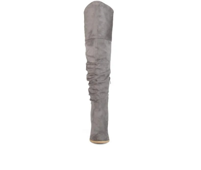 The Kaison is a ruched over-the-knee boots by Journee Collection is constructed with soft faux suede uppers that rise over the knees with raised vamps that create stylish detail. A rounded toe and stacked chunky high-heels finish the design to give you the perfect look for your day.