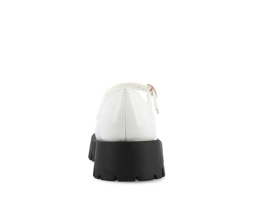 An iconic 90s style revived for the modern fashionista the Kamie flats by Journee Collection. This bold mary jane boasts glossy vegan leather uppers elevated by a chunky treaded platform sole. A round-toe and buckle detail make this statement piece an absolute classic.