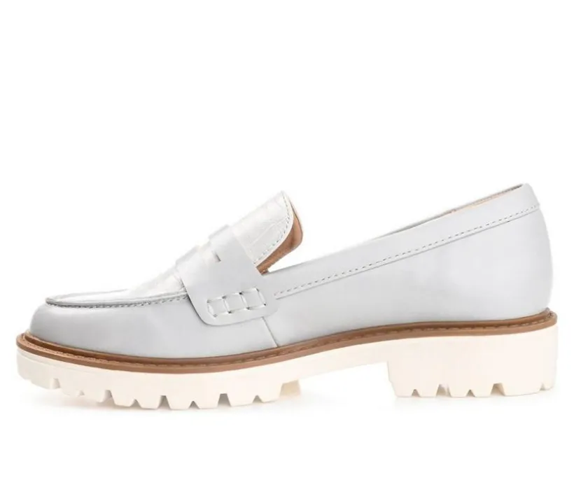 Look and feel your best in a sleek yet comfortable style. The Kenly penny loafer by Journee features a 4 mm Tru Comfort Foam™ footbed, soft vegan leather, and notches at the topline that make your every step feel like you’re walking on clouds. A chic croc textured accent at the vamp adds to the classic styling, and a white chunky block heel adds a contemporary twist. At Journee, our flat styles will have you looking just as professional as the boss at work to having the cutest shoes when you go out for the night.