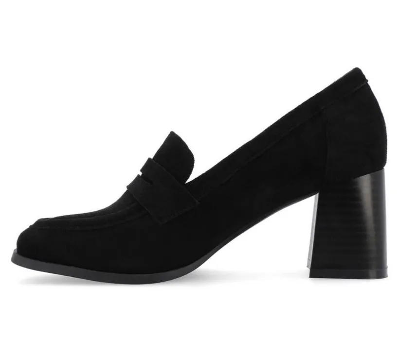 Introducing the Malleah heeled loafer by Journee Collection – perfect for a polished and sophisticated look at the office. With a 2 1/2-inch block heel, these shoes will elevate your outfit while providing added comfort from the 4 mm Tru Comfort Foam™ insole. Made with high-quality vegan leather and featuring a square-toe design, these loafers are both stylish and effortless.