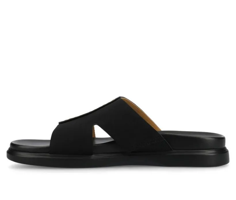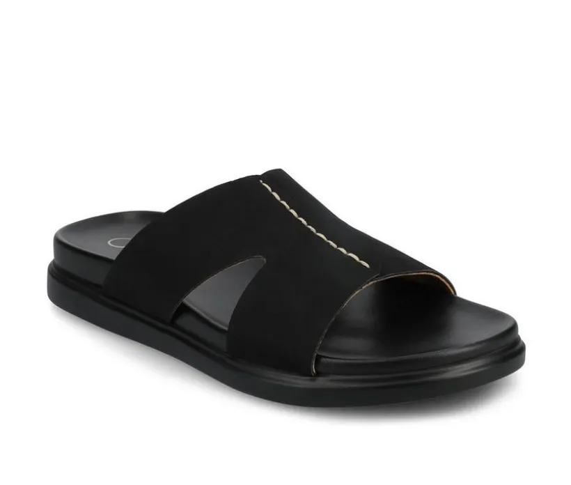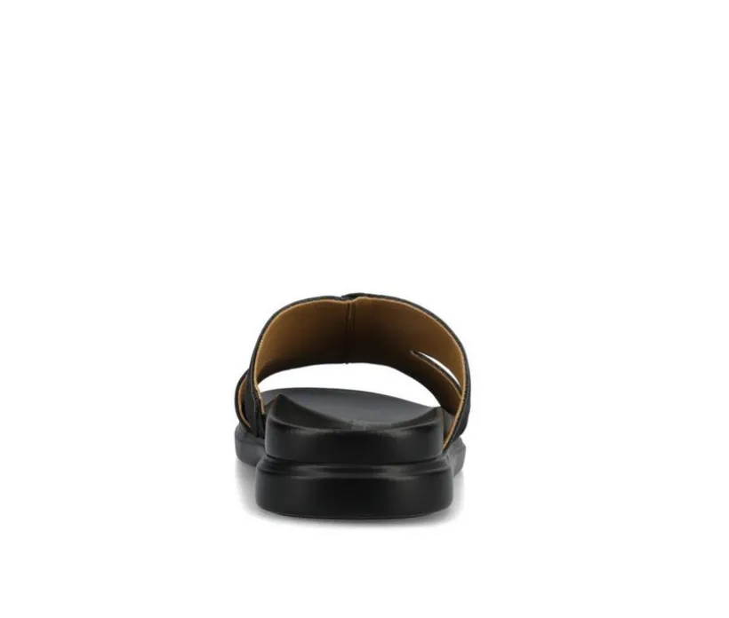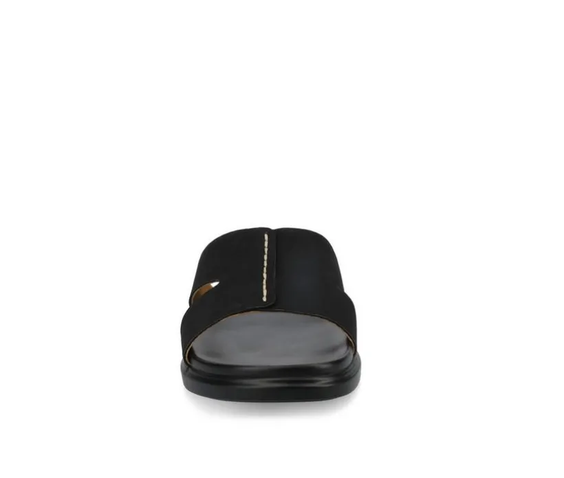 The Misey Slip-On Sandal from Journee is a sleek and stylish choice featuring an open-toe design and chic contrast stitching that elevates its visual appeal. Crafted from durable faux leather, this sandal ensures lasting quality while maintaining a lightweight feel. Its cushioned footbed delivers exceptional comfort, making it perfect for all-day wear in any setting.